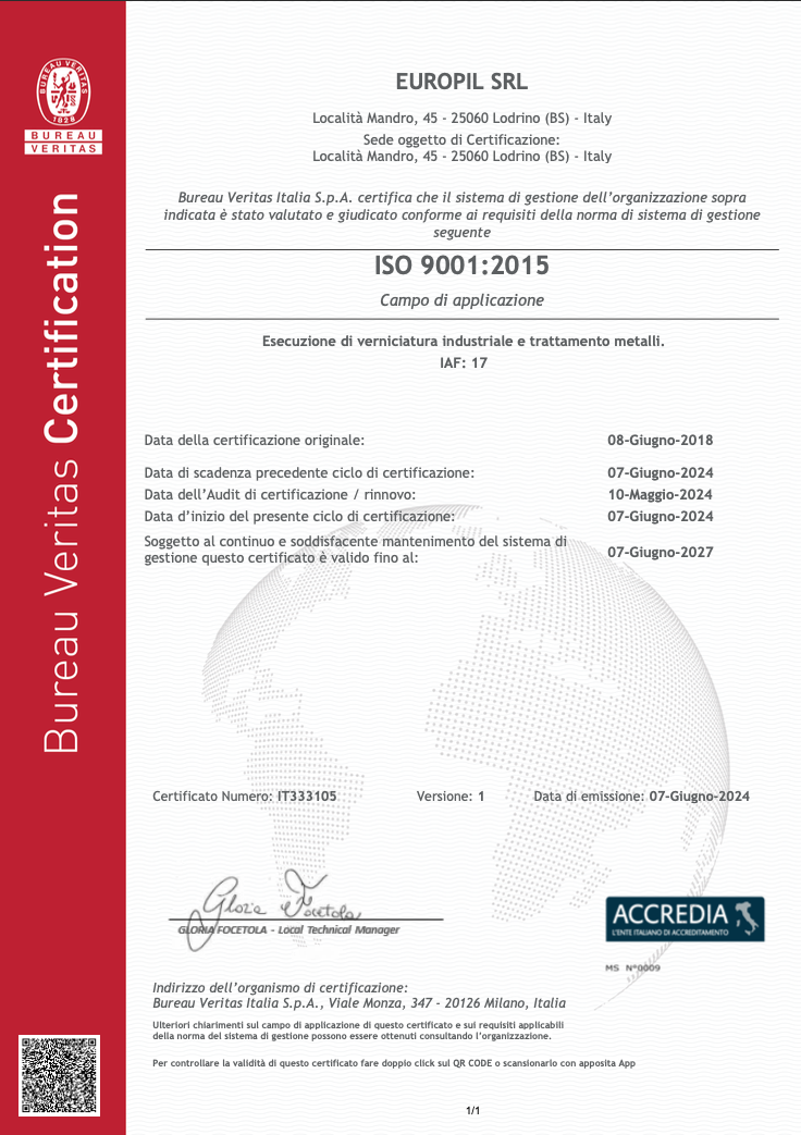 La nostra azienda è orgogliosa di aver ottenuto la certificazione ISO 9001, riconoscimento internazionale del nostro impegno costante verso la qualità e l’efficienza dei processi produttivi.